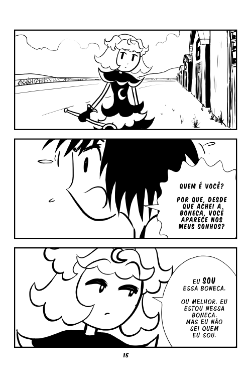 Primeiro de tudo ME DESCULPE A DEMORA EM COMENTAR! E meu ultimo ano na escola entao estou estudando feito louca xD Enfim nao pense que eu nao ia ler afinal eu mesma opitei por continuar a busca !!!! E olha eu gostei muito do estilo de desenho e principalmente da nova historia (ou velha?) O Sel ficou tao lindo com esse novo traço ! <3 E achei interessante como as historias se casam e se encontram ! Como vc consegue fazer isso? Não é muita coisa pra cabeça não? rsrsrs Tbm gostei da organização dos quadros acho que assim fica mais facil para ler. Mas com certeza a busca que eu mais vou acompanhar é a da garota com a boneca. Achei muito interessante isso sei lá adoro coisas assim!